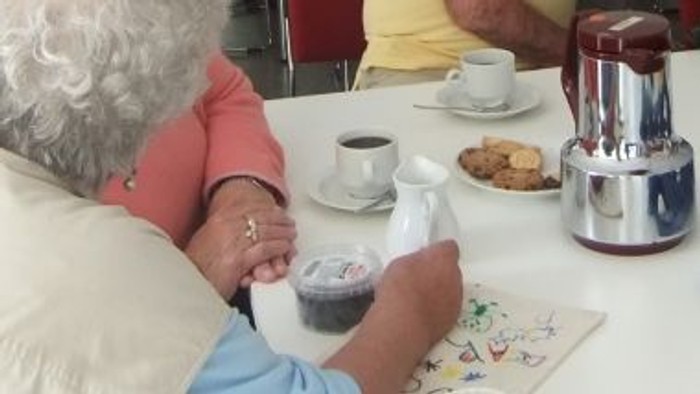 Wir haben jede Woche ein anderes Thema, das im Schaukasten aushängt. Dazu gibt es Kaffee, Tee und Gebäck.