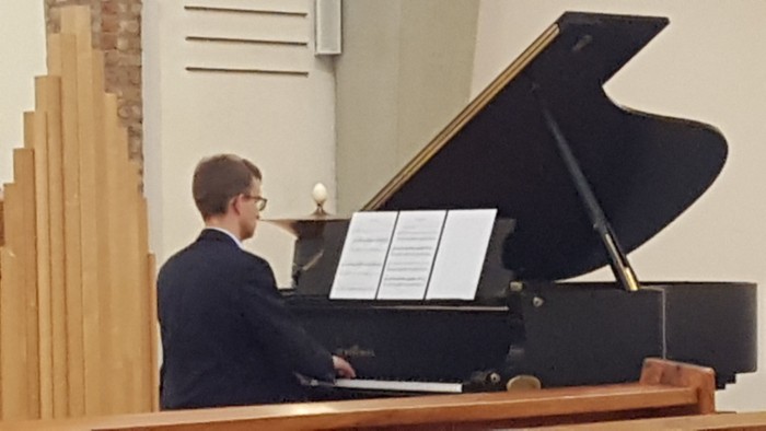 Am 11.7. stellte der neue Kantor Maximilian Bauer sein erstes FULLMOON-Konzert vor und hatte dafür einen absoluten musikalischen Außenseiter ausgesucht, nämlich das Klavierstück „Vexations“ von Erich Satie. Vexations heißt übersetzt Quälerei – nicht ganz ohne Hintersinn. Denn Satie weist an, das nur ca. einminütige Stück, das aus einem Thema und zwei Variationen besteht, 840 mal zu wiederholen. Da würde ungefähr 12 Stunden dauern - und so war es auch angekündigt!