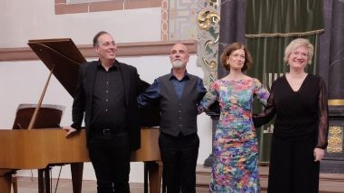 Eine Einführung in den Klangraum des englisch-sprachigen Gesangs bieten Elvira Metschan, Sabine und Wolfgang Moll mit dem Pianisten Hedayet Djeddikar (Professor und Dozent für Liedgestaltung an den Musikhochschulen Graz und Frankfurt) am Sonntag, 29. März 2026, 18:00 Uhr in der Gethsemanekirche Frankfurt am Main, Eckenheimer Landstraße 90. Die vier Musiker:innen verbindet – über die Leidenschaft für den klassischen Gesang hinaus – das Interesse an seltener aufgeführtem Repertoire. Auf einem Gesangs-Workshop 2025 entstand die Idee, diesen Abend gemeinsam zu gestalten, weil sich hier ein ganz eigener musikalischer Kosmos aufspannt. Dieser wird von den Vieren über 4 Jahrhunderte von Henry Purcell bis Benjamin Britten zu einem spannenden Hörerlebnis gebracht.